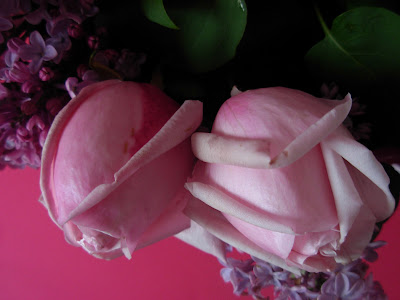 Ho cambiato intestazione e fiori. Dall'elleboro, elegante e tenace fiore invernale, a un bouquet primaverile e profumato di lillà e rose, le prime del 2oo9.