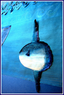 La balena e il pesce luna sembrano staccarsi dal foglio non per un effetto ottico, ma perchè ho messo poca colla!!!